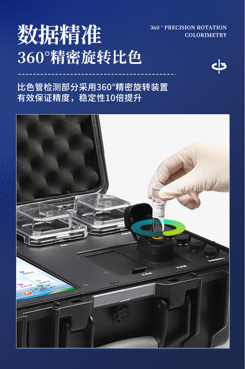 5、便攜一體式檢測(cè)設(shè)備,內(nèi)置大容量鋰電池,可一機(jī)實(shí)現(xiàn)戶外水樣消解、測(cè)定。