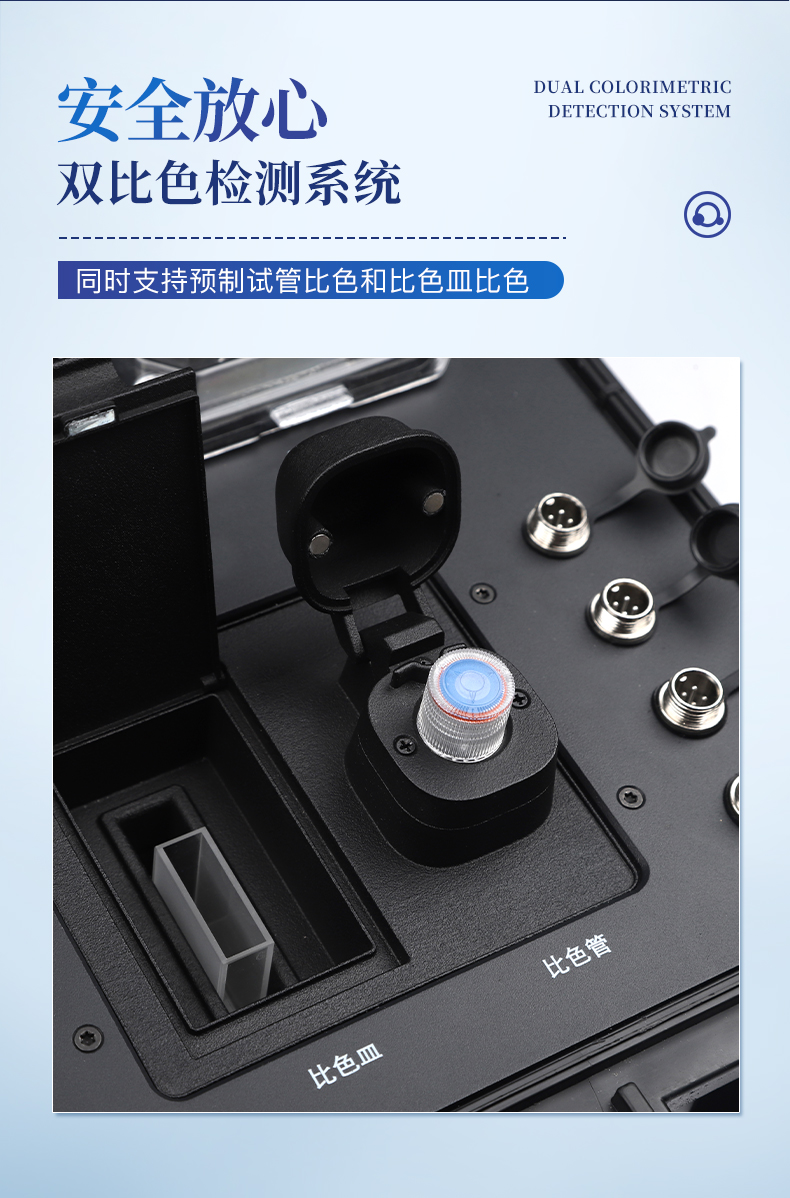 2、雙比色檢測(cè)系統(tǒng),同時(shí)支持預(yù)制試管比色和比色皿比色;