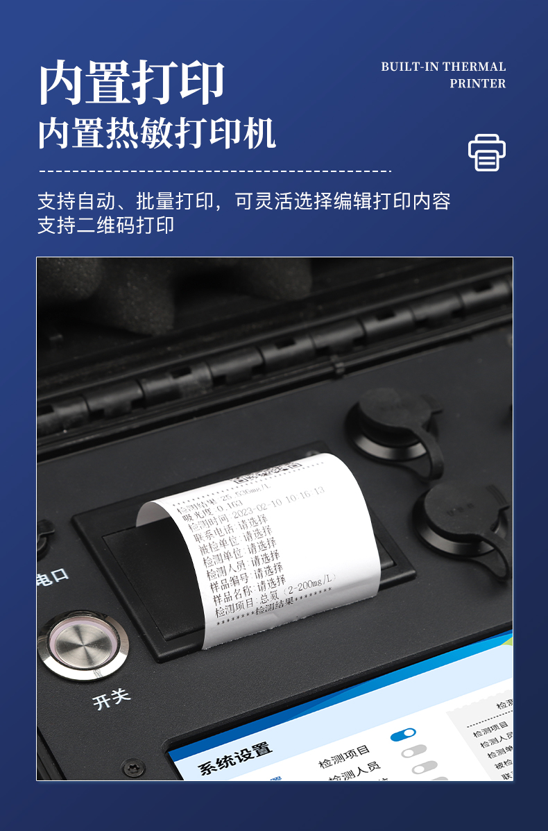 6、內(nèi)置熱敏打印機(jī),支持自動(dòng)、批量打印,可靈活選擇、編輯打印內(nèi)容,支持二維碼打印。