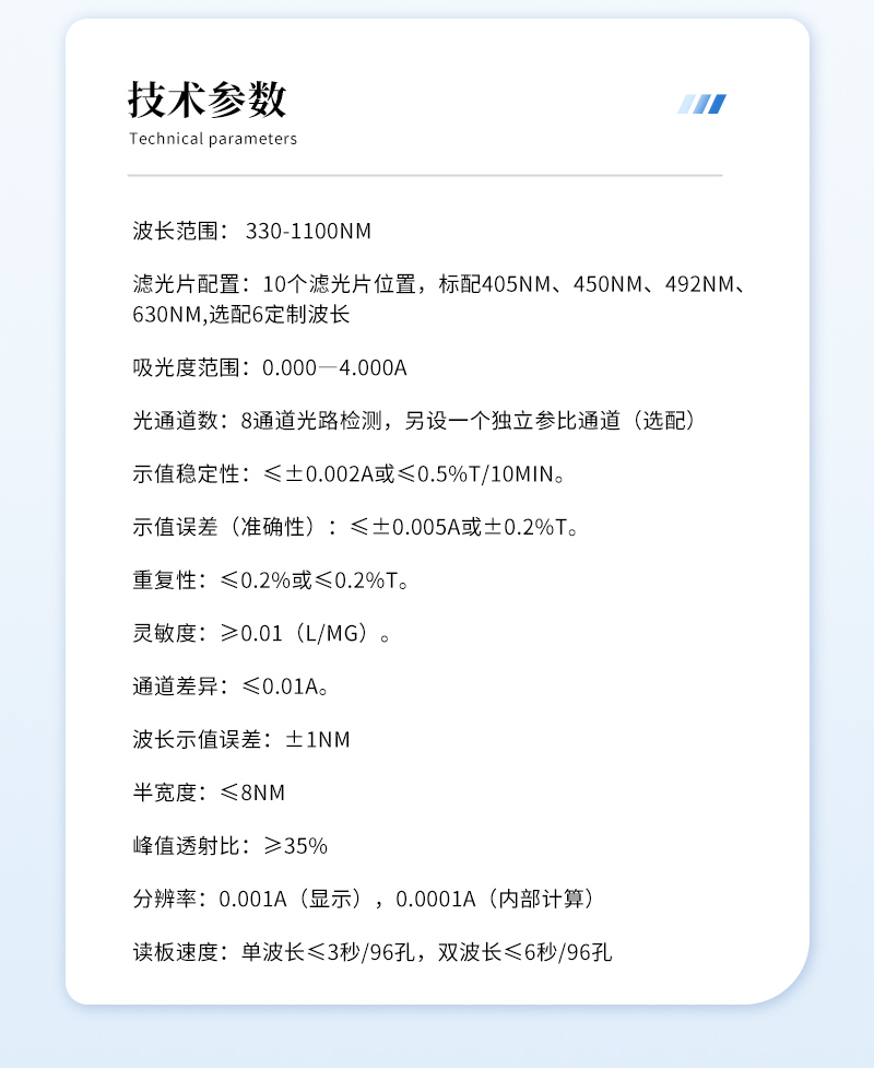 *光通道數:8通道光路檢測,另設一個獨立參比通道