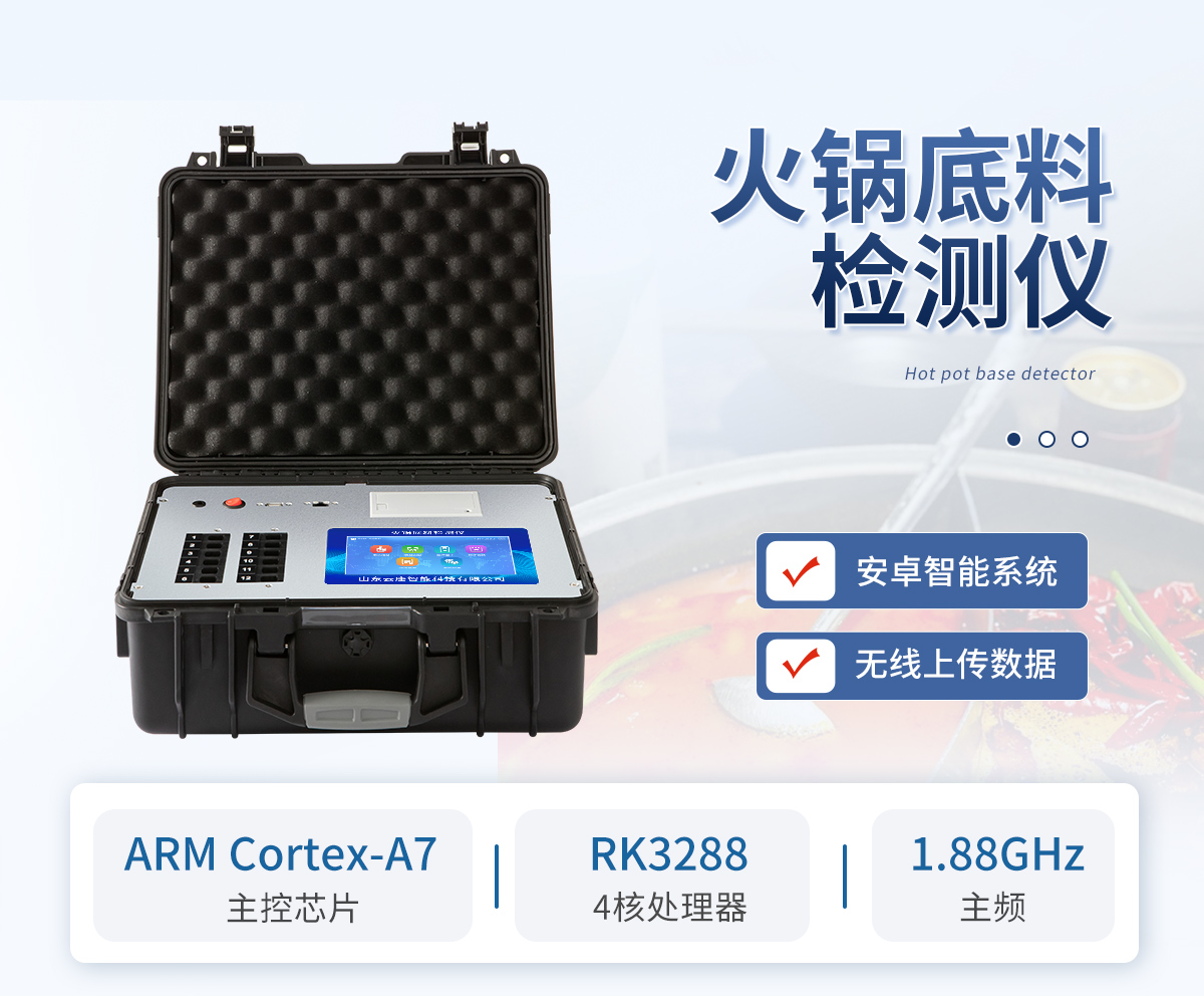 可現場快速檢測底料中非食用化學物質、濫用食品添加劑、農藥殘留、獸藥殘留、重金屬、抗生素類殘留、激素類殘留、毒素類殘留、化學類殘留等多項目的快速定性定量檢測。如底料中的山梨酸鉀、苯甲酸、甜蜜素、安賽蜜、黃曲霉B1等快速檢測。 該多功火鍋底料檢測儀為集成化食品安全快速檢測分析設備,廣泛應用于食藥監局、衛生部門、底料加工、工商執法等單位使用。
