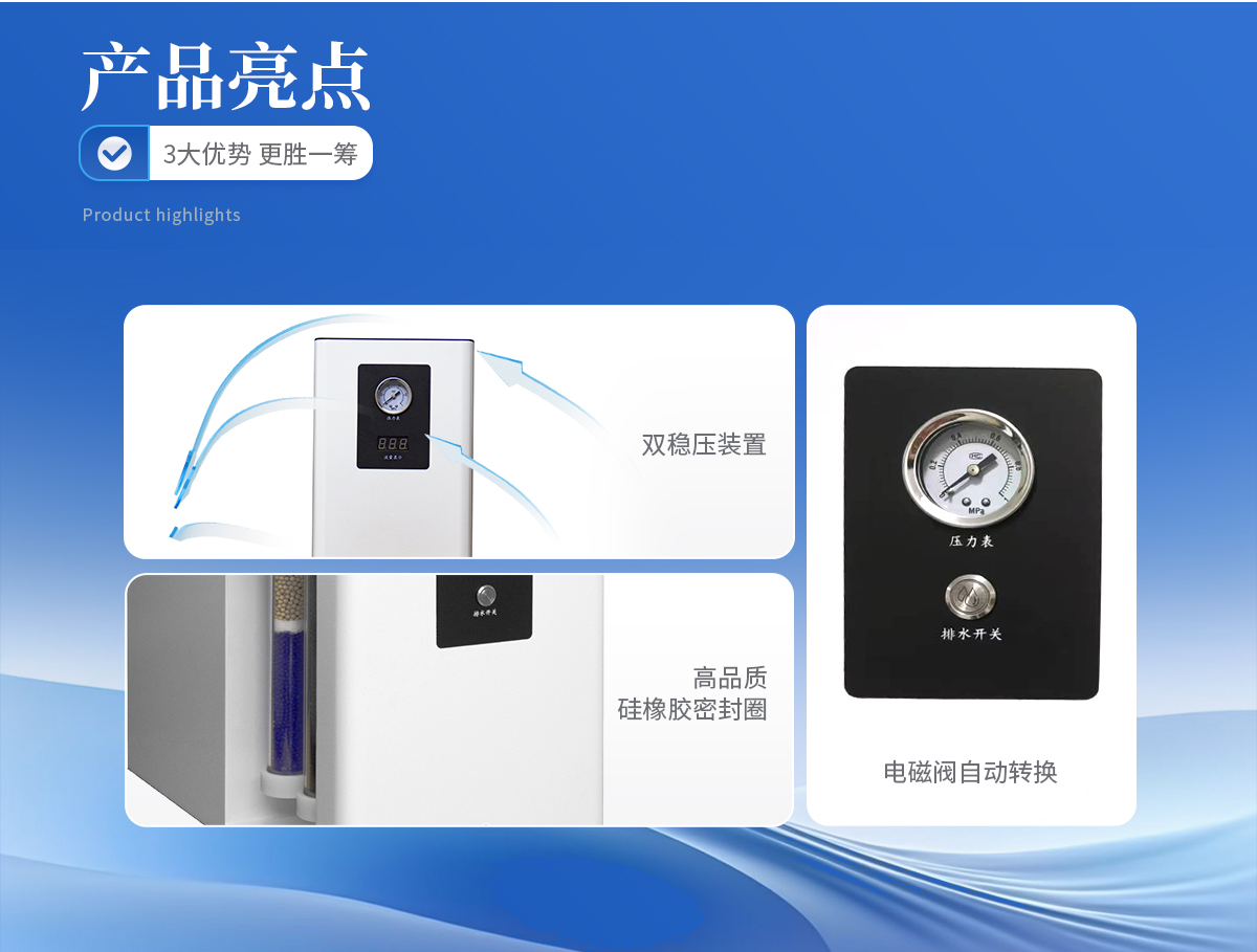 | 1、雙穩(wěn)壓裝置,確保高精度穩(wěn)壓條件下氣體流量的穩(wěn)定性。 | 2、電磁閥自動(dòng)轉(zhuǎn)換,徹底杜絕了電磁閥在自動(dòng)放水時(shí)產(chǎn)生的連續(xù)噪音,實(shí)現(xiàn)放水、轉(zhuǎn)換一體化。 | 3、儀器內(nèi)部采用硅橡膠圈,含硫量低有效提高氣體質(zhì)量,保證色譜基線穩(wěn)定。 | 4、體積小,雙支FV型亞克力過(guò)濾器,耐壓高,不會(huì)因工作環(huán)境及腐蝕氣體的影響,導(dǎo)致過(guò)濾管變形,開(kāi)裂而產(chǎn)生漏氣現(xiàn)象,可持久使用,一勞永逸。 |