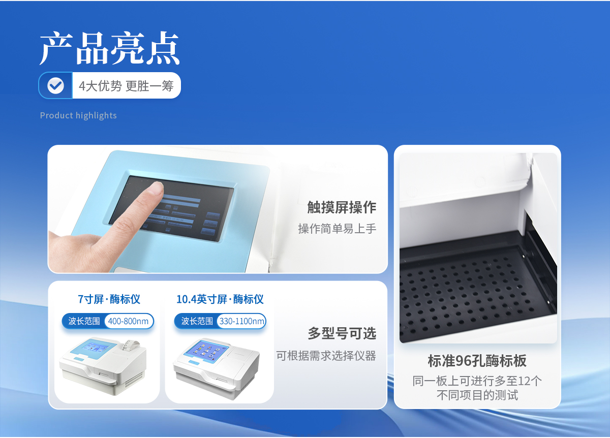 | 1. 內(nèi)置嵌入式系統(tǒng),無需外接電腦即可操作、存儲、打印; | 2. 全屏顯示96孔整板數(shù)據(jù), 直觀的可視化布板操作界面 | 3. 便捷的觸摸屏輸入,另可選配外接鼠標(biāo)和鍵盤 | 4. 測量模式:單波長檢測,雙波長檢測,兩點(diǎn)法,動力學(xué)法,酶抑制率,終點(diǎn)法、速率法。 | 5. 可選擇吸光度、Cut-Off定性計(jì)算、單點(diǎn)定標(biāo)、折線回歸、線性回歸、指數(shù)回歸、對數(shù)回歸、雙對數(shù)回歸、log-logit、冪回歸、四參數(shù)回歸、酶抑制率等計(jì)算方法; | 6. 在同一板上可進(jìn)行多至12個(gè)不同項(xiàng)目的測試,并可同一板檢測定性和定量項(xiàng)目。 | 7. *全面完善的質(zhì)控功能,包含westguard多規(guī)則質(zhì)控,即刻法質(zhì)控等多種質(zhì)控圖及質(zhì)控參數(shù)計(jì)算,具有質(zhì)控報(bào)警功能。 | 8. 具有靈活的定性公式輸入功能,滿足各種相同及不同試劑的不同的參數(shù)設(shè)置。 | 9. 布板和保存導(dǎo)入功能,大幅提高常用項(xiàng)目的測試效率 | 10. 可選配外接PC軟件,網(wǎng)絡(luò)化支持,迎合數(shù)字化發(fā)展方向,可定制上傳。 | 11. 全新風(fēng)格彩色圖形化界面,全中文操作系統(tǒng),支持鼠標(biāo)、鍵盤,支持輸入法。 | 12. 光源智能開關(guān),延長其壽命。 | 13. 提供多種打印方式及多種形式中文報(bào)告,并可定制各式報(bào)告。 | 14. 專用系統(tǒng)維護(hù)菜單,自動判斷儀器當(dāng)前狀態(tài)及性能指標(biāo),并可打印相關(guān)數(shù)據(jù) |
