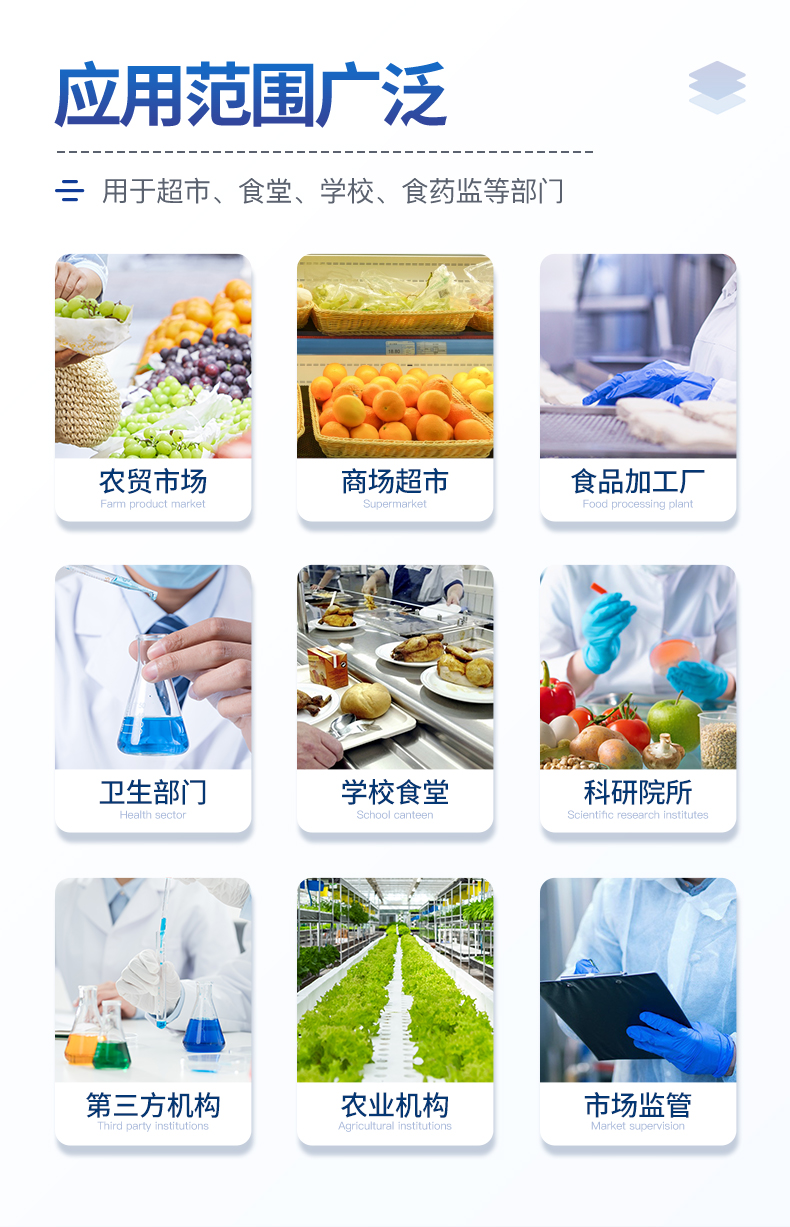 山東云唐智能科技有限公司生產(chǎn)的農(nóng)藥殘留檢測儀廣泛應(yīng)用于主要用于蔬菜、水果、茶葉、糧食、農(nóng)副產(chǎn)品等食品中農(nóng)藥殘留的快速檢測,依據(jù)國標(biāo)GB/T5009.199-2003進(jìn)行檢測,適用于果蔬茶生產(chǎn)基地以及農(nóng)貿(mào)批發(fā)銷售市場現(xiàn)場檢測,餐館、學(xué)校、食堂、家庭果蔬加工前的安全速測等。