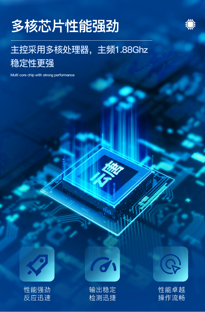 主控芯片采用ARM Cortex-A7,RK3288/4核處理器,主頻1.88Ghz,運轉速度更快速,穩定性更強。直流12V供電,可連接車載電源,可配6ah大容量充電鋰電池,方便戶外流動測試。 四波長冷光源,每個通道均配置410、520、590、630nm波長光源,標配**的光路切換裝置,專利光路切換功能可實現*多64波長,并且所有檢測項目可實現所有通道同時檢測。光源亮度自動調節與校準智能恒流穩壓,光強自動校準,長時間連續工作光源無溫漂現象內置新國家限量標準,與所測結果進行現場比對,并持續更新標準不間斷進樣,連續檢測 樣本編號自動累加。 檢測項目可擴充。檢測結果可批量打印,批量上傳。數據無線上傳平臺,并可從平臺導出為Excel表格。檢測結果存儲容量20萬條同時支持U盤拷貝,標準USB接口,免驅動插拔。可配置大容量鋰電池,固件可升級。儀器尺寸;42×31×20。儀器凈重:3.6kg。