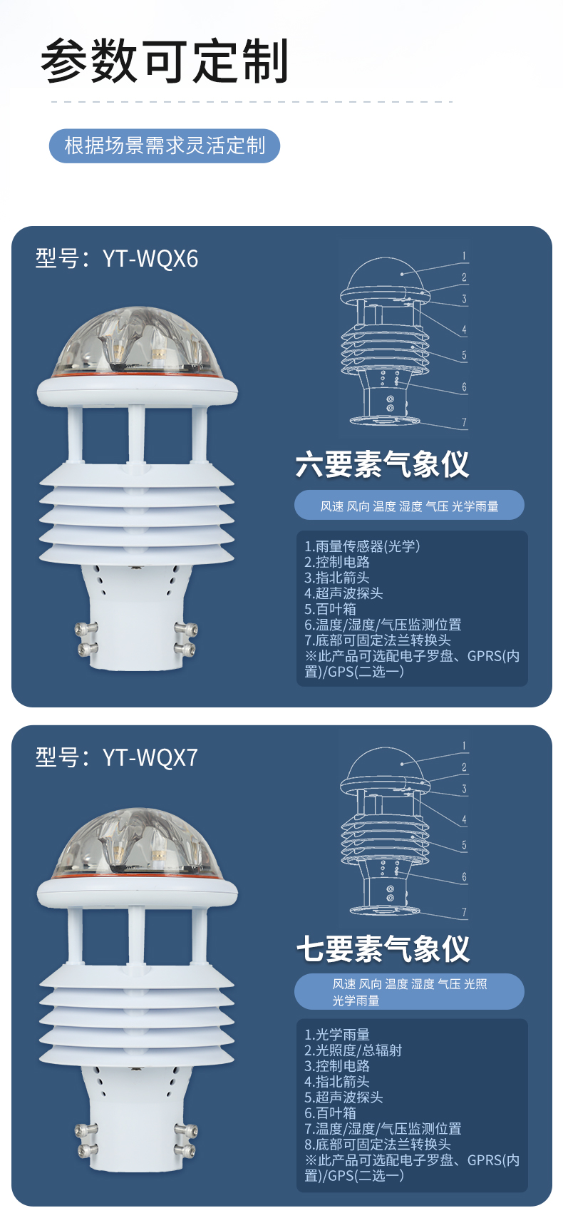 一體化氣象傳感器 YT-WQX12 產品結構圖: