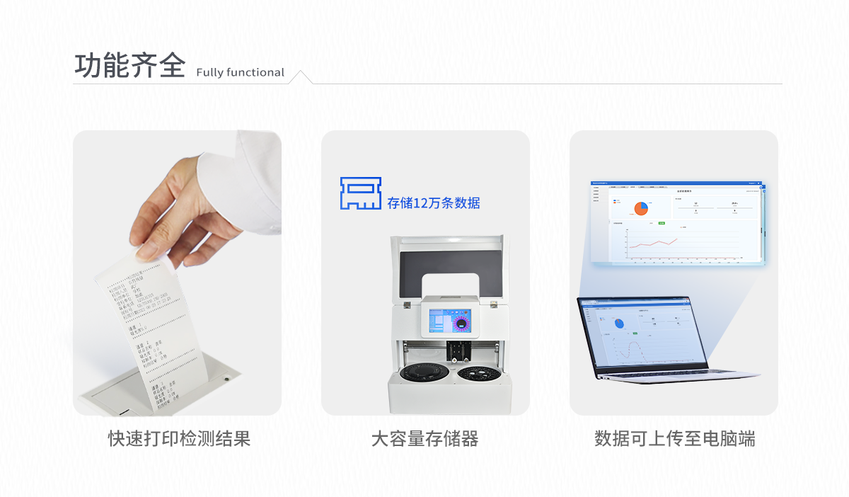 | 人性化界面,操作方便 | 儀器按照試劑要求自動(dòng)、按時(shí)、按量加入試劑,提高工作效率 | 儀器自動(dòng)對未正常放置的樣本或異常的樣本進(jìn)行檢查并提示 | 采用**的冷光源,保證了光源的穩(wěn)定性及數(shù)據(jù)的準(zhǔn)確性 | 大容量存儲(chǔ)器,能存儲(chǔ)12萬條數(shù)據(jù),滿足客戶需求 | 內(nèi)置微型熱敏打印機(jī),快速打印檢測結(jié)果,方便數(shù)據(jù)留存 | 可通過數(shù)據(jù)線連接電腦,將檢測的數(shù)據(jù)上傳至電腦端 | 儀器可自動(dòng)清洗管路,避免試劑污染 | 儀器檢測消耗試劑量和常規(guī)儀器一致 | 儀器具有自動(dòng)加溫溫控系統(tǒng) |