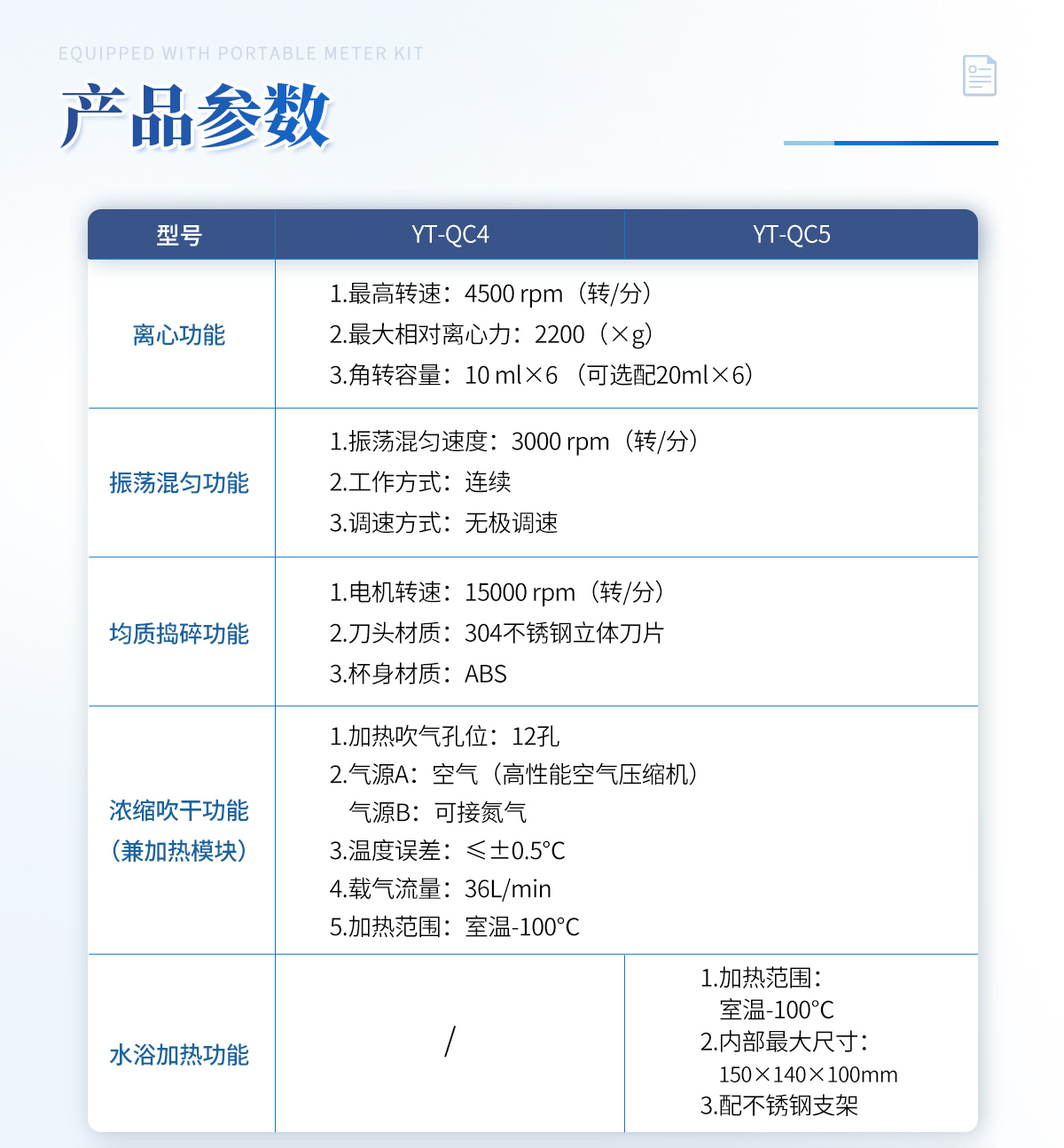 | (1)功能名稱:空氣吹干功能; 規格:12道; 功能說明:加熱孵育和吹干; 數量:1 | (2)功能名稱:離心功能; 規格:20ml×6; 功能說明:高速離心分層; 數量:1 | (3)功能名稱:均質搗碎功能; 規格:300ml; 功能說明:組織均質; 數量:1 | (4)功能名稱: 振蕩混勻功能; 規格:20ml; 功能說明:混勻、振蕩; 數量:1 |