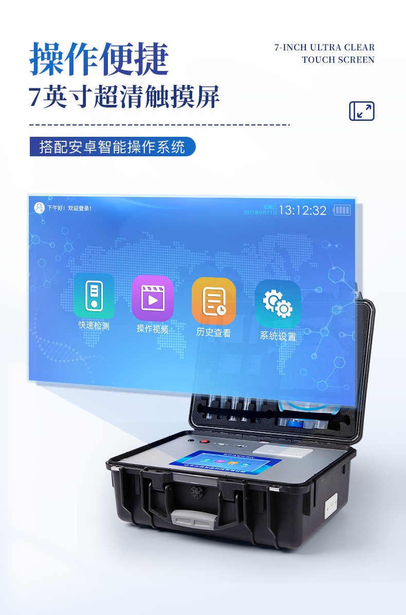 | ★1、安卓智能操作系統,采用更加**UI交互界面,儀器具有wifi聯網上傳、4G聯網傳輸、GPRS無線遠傳、網線連接功能,快速批量上傳數據。 | 2、智能化程度高,儀器具有自檢功能:具有開機自檢和調零功能,具有自動檢測重復性功能。 | ★3、新一代高速熱敏打印機,檢測完成可自動打印檢測報告和二維碼。 | ★4、儀器帶有監管平臺,數據可局域網和互聯網數據上傳,檢測結果直接傳至食品安全監管平臺。進行區域食品安全監管及大數據分析處理與數據統計,檢測區域食品安全長短期動態,達到食品安全問題預估、預警 | 5、一體化主機,包含食品安全檢測模塊、多通道農藥殘留檢測模塊、膠體金免疫層析檢測模塊。 | 6、一體化便攜式快檢設備,滿足現場及流動檢測使用需求,能夠在同一軟件下實現所有檢測項目的檢測,并可通過同一窗口直觀顯示檢測結果。 | 7、膠體金模塊檢測方式:軌道式自動傳輸掃描,檢測完成后自動退出檢測卡。 | ★8、儀器內置攝像頭拍照,可顯示金標卡實時圖像,系統自動分析并呈現出CT曲線圖,CT線自動識別,無需手動調整。 | 9、儀器具有品類多種類樣品菜單庫,可靈活選擇檢測樣品,不同的檢測通道可同時檢測不同的樣品項目。 | ★10、儀器內置操作教學視頻,點擊視頻模塊即可快速查看,方便用戶使用。 | 11、樣品處理簡單省力,整體操作快速、安全、便捷。 | ★12、儀器可配置身份識別功能,通過密碼或刷證件開機,防止非工作人員操作等。 | 13、高靈敏度,高檢測精度,高重復性精度,掃描式高精度光學傳感器。 | 14、內置強大的數據庫,可在儀器上直接選擇樣品名稱、檢測指標、送檢單位等信息,也可在儀器上直接編輯錄入樣品名稱、檢測指標、送檢單位等信息并保存進樣品數據庫。 | 15、儀器具有重新校準、鎖定、恢復出廠設置功能。 | 16、結果判定線可修改,對照值標定值可保存,斷電不丟失數據。 | 17、兼容市場上所有的膠體金卡,使用耗材不受限制,極大增強用戶使用體驗。 |