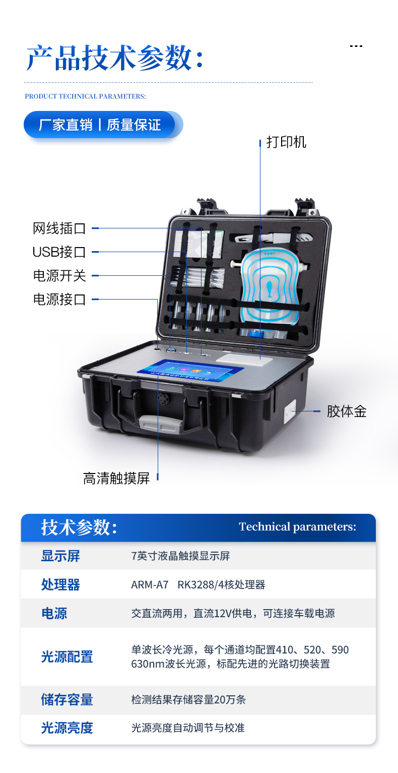 5、一體化便攜式快檢設備,滿足現場及流動檢測使用需求,能夠在同一軟件下實現所有檢測項目的檢測,并可通過同一窗口直觀顯示檢測結果。