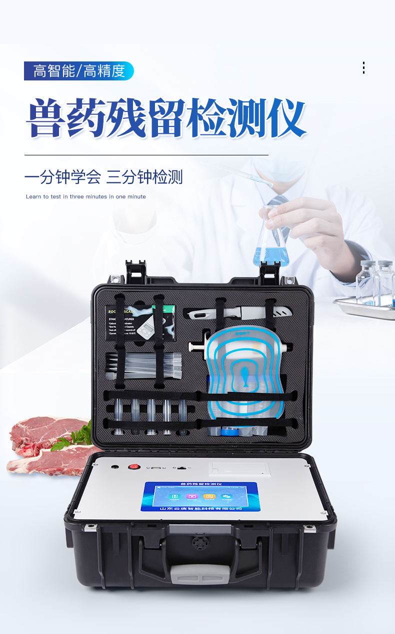 瘦肉精檢測儀可現場快速檢測鹽酸克倫特羅、萊克多巴胺、沙丁胺醇、己烯雌酚、喹乙醇等。儀器預留其他項目檢測程序和端口,根據日后需求可方便的自主增加檢測項目。日后可升級為檢測抗生素、獸藥殘留、動物疫病、病害肉、的綜合類型儀器。