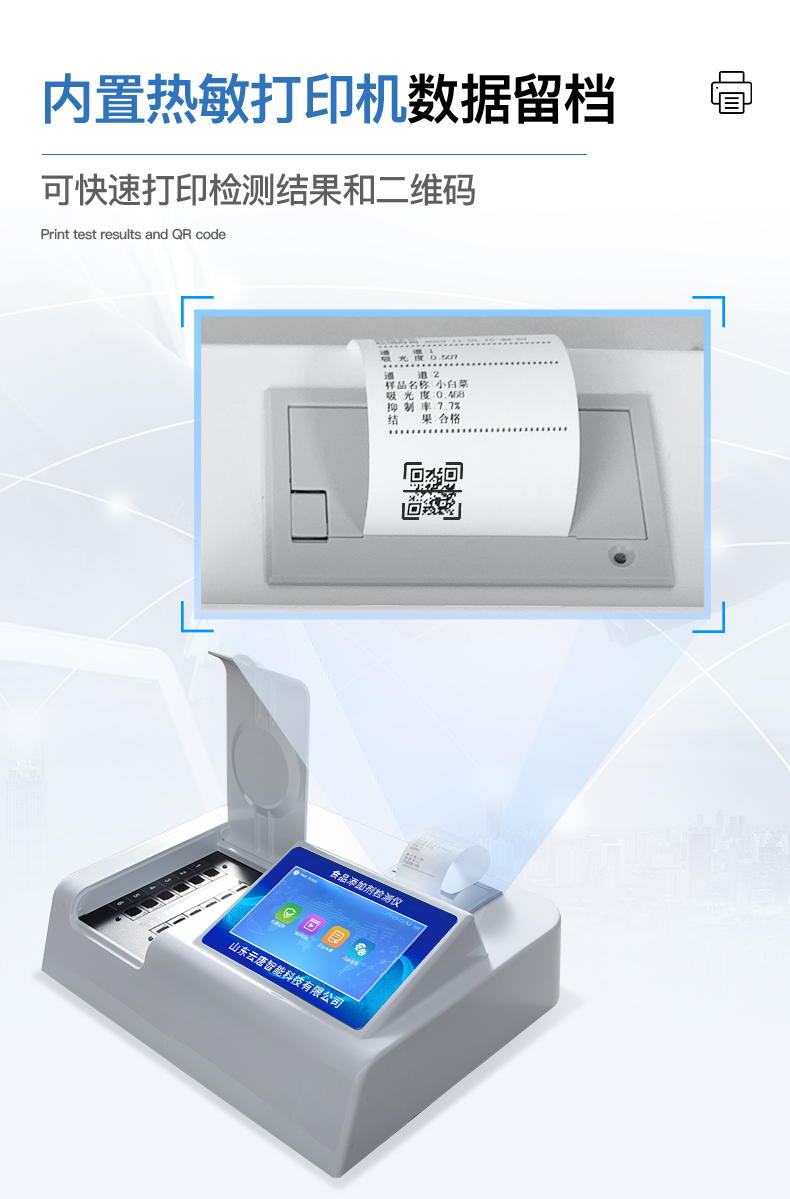 4、 配備嵌入式熱敏打印機,可選擇手動打印或者自動打印,三分鐘出打印結果。