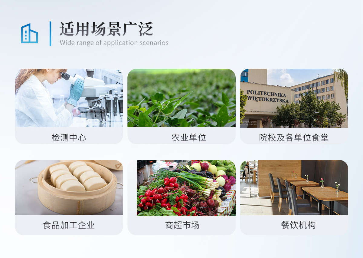 | 儀器采用手提式一體化系統檢測技術,將分光光度模塊、膠體金檢測模塊、新型農殘檢測模塊、數字化管理模塊、無線通訊模塊高度集成于一體,支持檢測200種食品安全檢測項目,同時預留升級檢測方法。 | 儀器檢測模塊標準化、智能化,檢測項目可隨意自由組合。檢測箱體內置多個標準檢測單元,檢測模塊可以調整配置。 | 顯示屏幕:儀器采用10.1英寸豎向液晶觸摸屏顯,搭配運行安卓智能操作系統,主控芯片采用ARM Cortex-A7,RK3288/4核處理器,主頻1.88Ghz,操作方便,性能更強。 | 檢測通道:≥12通道;采用精密旋轉比色池設計,使用同芯片同光源校準精度,解決不同光源之間的誤差值,更加準確**。(1-12通道間誤差0.1%,***:**202022821055.2) | 儀器光源:高精度進口四波長冷光源,每個通道均配置 410、520、590、630nm 波長光源,標配**的光路切換裝置,專利光路切換功能可實現64波長,并且所有檢測項目可實現所有通道同時檢測。 | 設備可一鍵校準,自動保存校準數據,自動對比校驗,得到精準光源,采用Android SP存儲數據,光源數據永不丟失,方便每一次使用。 | 通訊接口:配備無線通信模塊、4G(APN)通訊模塊、藍牙傳輸,同時具有雙USB接口以及RJ45網線接口,可以多方式實現數據保存及數據傳輸 | 存儲方式:支持U盤存儲,標準USB接口,免驅動安裝。檢測結果存儲容量20萬條以上,可生成Excel表格進行拷貝,并具有登錄保護功能。 | 智能化操作系統: | 1)操作系統:儀器可在同一檢測界面自動對應相關檢測通道,一次性選擇1-12個樣品名稱,無需退出界面,節省操作時間。并可以對每個通道屬性和樣品信息單獨進行編輯,例如送檢單位、人員,檢測人員等,打印時勾選打印顯示。 | 2)數據集成系統:設備首頁自動匯總分析檢測數據,包含:周檢測數據、月檢測數據,全部檢測總數量,均包含檢測總數,合格數,不合格數,以及相關柱形分析圖,各項檢測數據一目了然,無需電腦查詢,更加快捷直觀。 | 3)數據庫系統:十幾項數據庫分類管理儀器:包含項目類型、項目數據、檢測數據、歷史記錄、國標信息、曲線信息、采樣信息、檢測信息、受檢信息、復核信息、圖表信息、光源校準信息、打印樣式信息、樣品庫信息等等,數據庫之間互相協調聯動保證數據的真實完整性。同時產品數據庫以及歷史檢測記錄支持一鍵檢索功能。 | 4)限量規判系統:具有限量查詢、添加物質合規判定系統。檢測出結果后,系統自動調用系統數據庫中相關國標進行比對判定,客觀顯示判定結果是否合格。 | 5)項目預設系統:儀器具有任務預設模塊,一鍵提前預設,給出方便快捷的新檢測方案,每一個任務分別可以設置不同的樣品、批次、編號、來源、備注、抽樣信息、檢測信息、受檢信息、復核信息等更多信息。樣品送檢時一鍵調取保存信息,并可多次調取,大大提高檢測效率。 | 6)數據監管系統:同步對接監管平臺,數據可局域網和互聯網數據上傳,檢測結果可選擇直接傳至食品安全監管平臺。進行區域食品安全監管及大數據分析處理與數據統計,檢測區域食品安全長短期動態,達到食品安全問題預估、預警。 | 7)打印系統:內置全新打印機,新創自定義打印方式,可按需靈活勾選控制:產品合格證(國家農業部標準要求),二維碼,抽樣信息、檢測信息,受檢信息、復核信息、抽樣日期、檢測日期等信息的打印。 | 供電模式:儀器交直流兩用,直流12V供電,可連接車載電源,可配6ah大容量充電鋰電池,電量可實時顯示,方便戶外流動測試。 | 膠體金檢測模塊:采用雙通道CMOS成像處理技術及膠體金免疫層析技術,可同時讀取雙膠體金卡數據,自動采集、處理分析,將檢測結果顯示,并可根據參考限值自動判斷檢測結果,可檢測常見的獸藥殘留、生物毒素、抗生素、違禁添加物等。 | 1)探測技術:CMOS成像探測; | 2)檢測通道:1個通道; | 3)檢測方式:消線法和比色法; | 4)顯示模式:陰性或陽性; | 5)曲線形式:軌道式掃描方式,顯示金標卡圖像,實時生成、識別CT曲線圖,無需手動調整,完成檢測后自動退出檢測卡。兼容市場上其他金標卡,使用耗材不受限制。 | 儀器加入遠程升級功能,可定向分客戶分儀器更新,開機后自動更新,客戶無需任何操作,即可升級全新項目。做到了無需退換機器即可實現實時遠程升級檢測儀器。 |