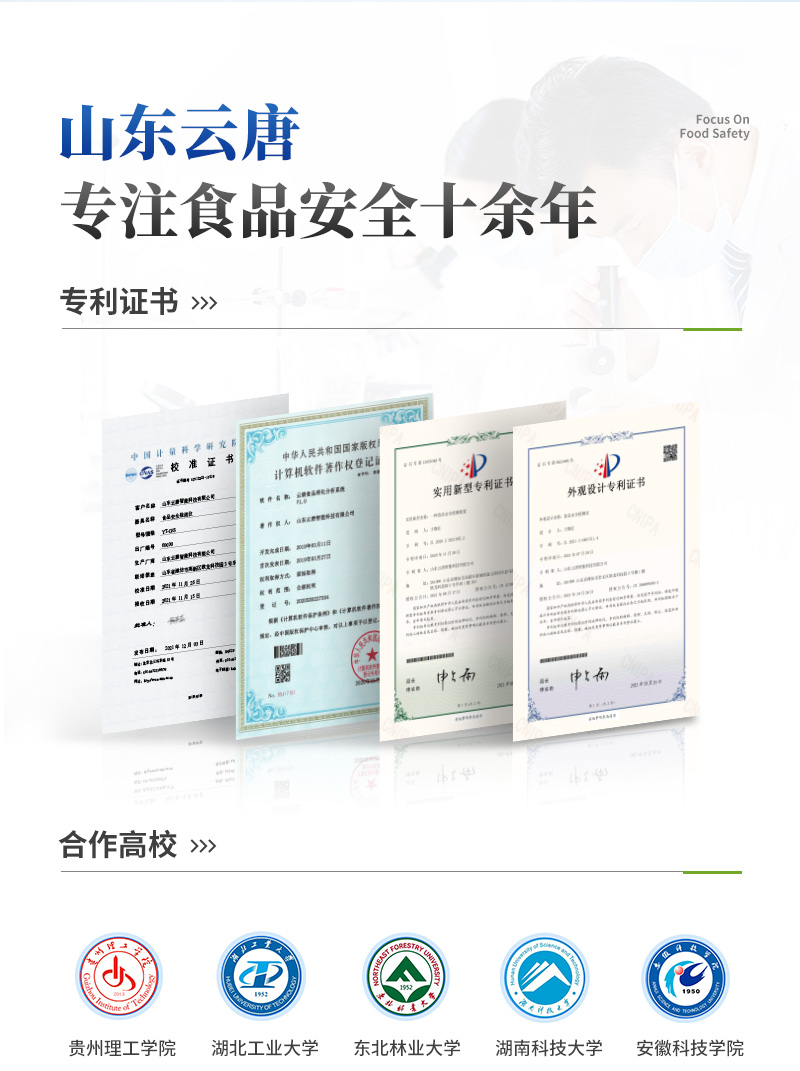 | 該儀器采用ARM Cortex-A7,RK3288/4核處理器,搭配運行安卓智能操作系統,集實驗操作,分析結果,打印報告等功能于一體,使用方便,性能更強。 | 儀器采用7.1英寸液晶觸摸屏,單機即可操作,無需連接外部顯示設備或控制裝置。 | 設備具有12個檢測通道,可一次性檢測11個樣品,效率更高。 | 儀器采用精密旋轉比色池設計,使用同光源校準精度,檢測結果更為準確**。 | 設備具有數據存儲功能,設備可以存儲數據100000組,可在屏幕上直觀查看歷史數據,可導出數據。 | 設備自帶打印功能,可對樣品信息及檢測結果無限次隨意打印。 | 該儀器模塊化高度集成,同步設有數字化管理模塊、無線通訊模塊,可將檢測結果進行分析,直接上傳至數據平臺,實現數據共享,方便后期進行數據分析與統計。 | 儀器采用高度智能化系統,儀器自動對檢測結果與國標限量值進行對比,自動判定樣品是否合格,結果更為直觀。 | 本設備可以針對檢測樣品信息,對每個通道屬性單獨進行編輯,例如受檢單位,檢測人員等。 | 設備具有過壓保護、防靜電干擾、防磁場干擾等功能 | 該設備可進行技術性遠程升級,更新程序,無需返廠,并且后期我司將持續免費更新系統版本,降低使用成本及運輸損耗風險。 |
