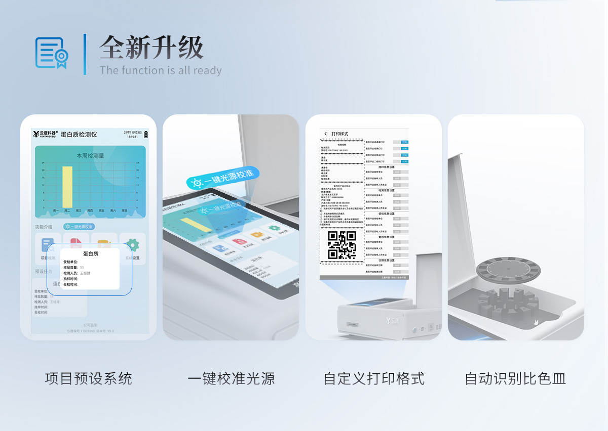 可快速檢測奶粉、牛奶及乳制品中的蛋白質,儀器預留其他項目檢測程序和端口,根據日后需求可方便的自主增加檢測項目。