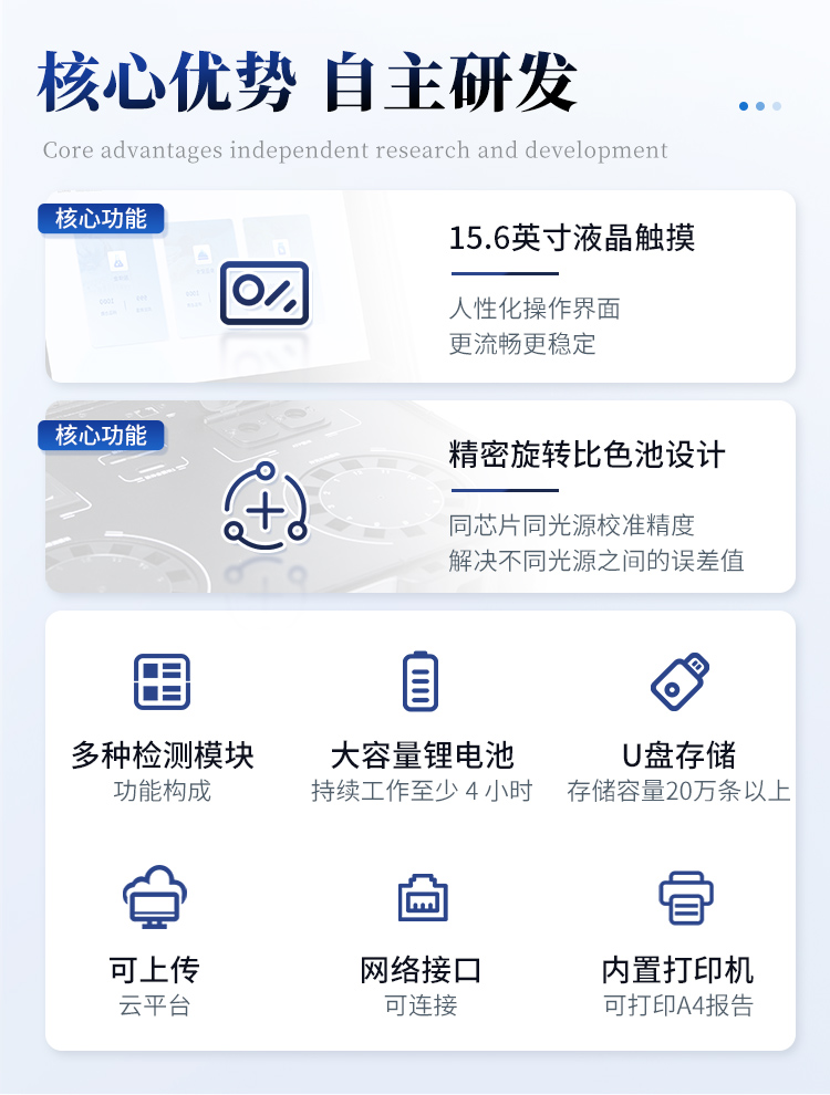 2、儀器檢測模塊標準化、智能化,檢測項目可隨意自由組合。檢測箱體內置多個標準檢測單元,檢測模塊可以調整配置。