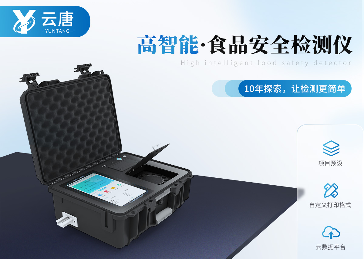 山東云唐智能科技有限公司生產的高智能食品安全檢測儀為集成化食品安全快速檢測分析設備,采用臺式一體化設計,可快速檢測200多種食品安全項目,包含非食用化學物質、濫用食品添加劑、農藥殘留、獸藥殘留、重金屬、病害肉、營養強化劑、抗生素類殘留、激素類殘留、真菌毒素類殘留、化學類殘留等項目的定性定量檢測。該高智能食品安全檢測儀為集成化食品安全快速檢測分析設備,目前已于食藥監局、衛生部門、高教院校、科研院所、農業部門、養殖場、屠宰場、食品肉產品深加工企業及檢驗檢疫部門等單位廣泛使用。
